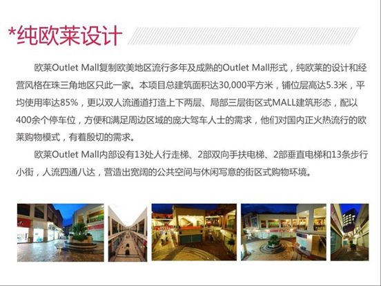 作为珠三角的首创街区式品牌折扣商业,欧莱MALL的出现具有重要意义。它不仅是香港环球商机商业运作上的一次重大突破,同时也是中炬高新集团商业上的一次大胆尝试。