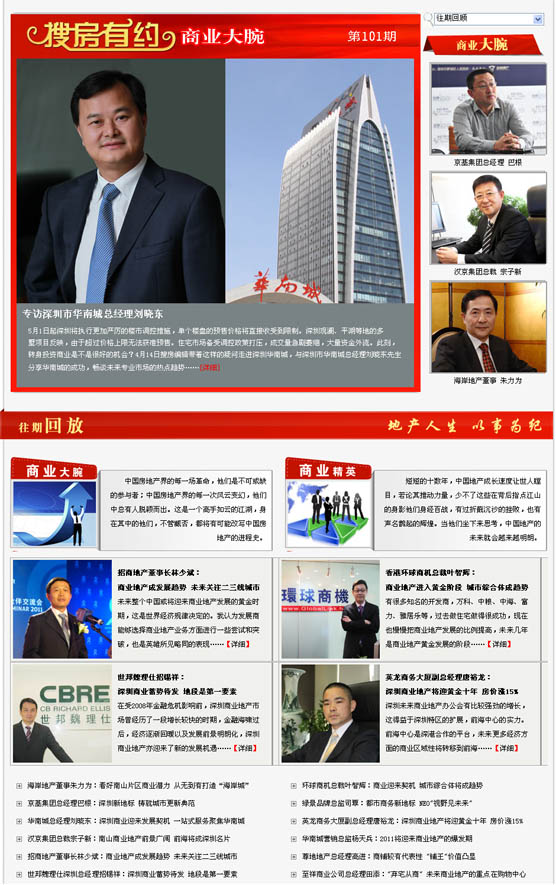 针对商业地产的新形势,搜房网商业地产频道独家采访了众多开发商、代理老总,探讨新政下商业地产的发展趋势,把脉市场风向,为投资者指点迷津。