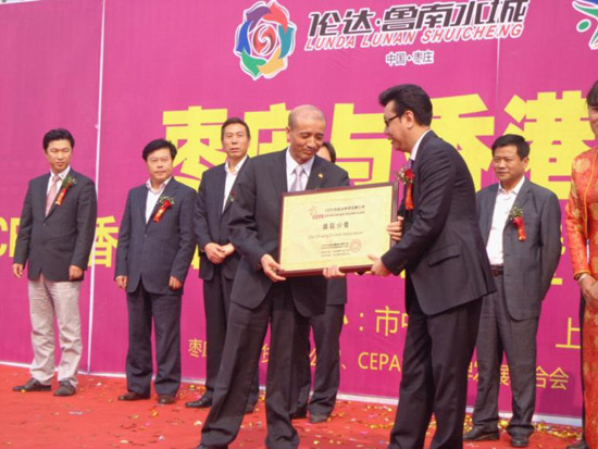 2012年9月20日,在山东枣庄举办了一场具有商业颠覆意义的品牌签约仪式,本次活动主题为“枣庄与香港零距离”;旨在实现由香港环球商机集团推动的CEPA香港品牌联合会枣庄分会最终落户于鲁南水城。