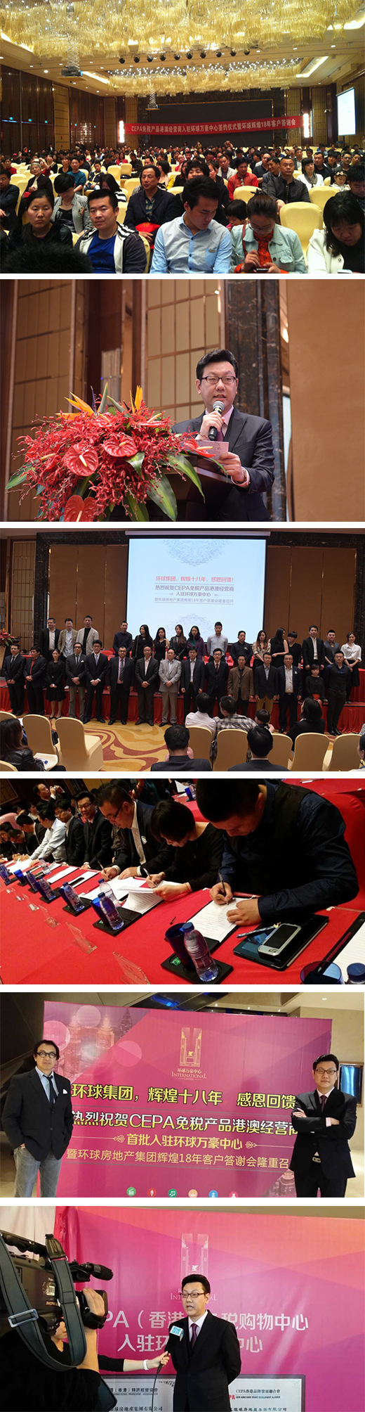 2014年4月12日,香港环球商机地产顾问集团携手浙江环球地产集团在绍兴世茂皇冠假日酒店隆重举办了绍兴环球万豪中心首批港澳台品牌商家签约仪式。本次大会由浙江环球房地产集团主办,CEPA(香港)品牌发展联合会、中国(香港)特许经营协会、香港环球商机地产顾问集团协办,共邀请了三十余家香港、澳门、台湾的品牌商家参加,数千位投资商客出席活动,共同见证了绍兴环球万豪中心与品牌商家签约的重要时刻。