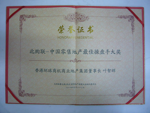 本次招商大会中叶智辉先生再次获得了2014年度“北购联—中国零售地产最佳操盘手”殊荣。