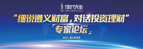 7月5日,由遵义时代天街主办的“细说遵义财富,对话投资理财”高峰论坛活动在遵义市大连路航天大厦三楼隆重举行,中国城镇经济研究所所长,原星河湾总经理、联华地产副总裁的贡立华先生,首届中国商业地产十大杰出操盘手、大中华购物中心联盟副秘书长、中购联购物中心发展委员会专家委员、中国步行商业街工作委员会专家委员叶智辉先生,香港环球商机西南公司总经理李平先生,遵义市建筑设计院总经理陈颖先生,遵义时代天街项目副总袁远龙先生等资深专家,主持人汤翱先生,主流媒体搜房网、新浪乐居网、楼盘网等,以及遵义各行各业嘉宾共300余人出席了本次论坛活动。各位专家分别围绕当前经济、房地产市场形势下投资的方向和策略、中国商业及商业地产的发展和运营、如何投资理财、以及遵义时代天街项目的定位、规划、招商、策划、运营等嘉宾关注的话题现场进行了解读和解说。