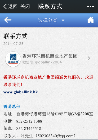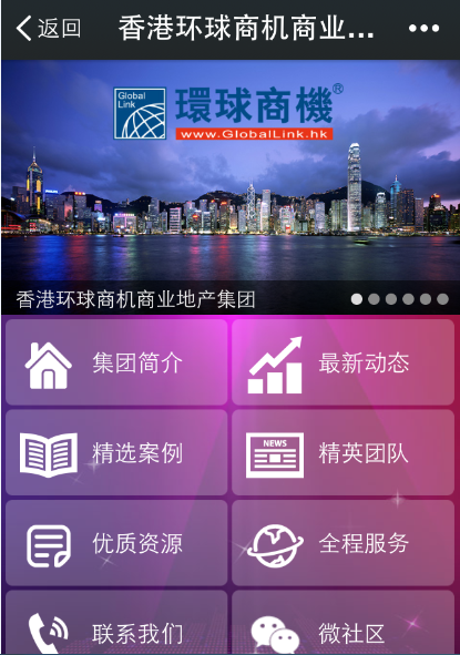 作为行业领先的商业地产全程综合服务商,香港环球商机推出了全新的移动沟通平台——香港环球商机微网站,进一步扩大环球商机的影响力,更系统、更多元化,亦是更便捷地为合作伙伴展现香港环球商机的商业魅力和专业服务。