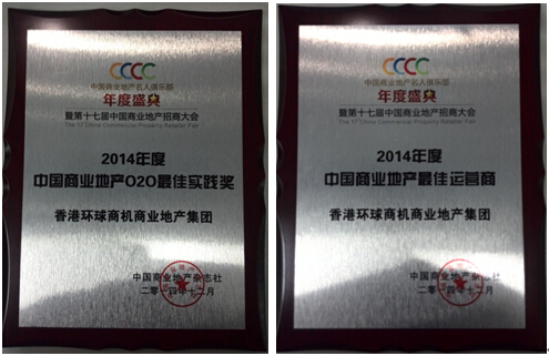 在辞旧迎新之际,香港环球商机再度获得业界首肯,在刚刚结束的中国商业地产名人俱乐部年度盛典暨第十七届中国商业地产招商大会上荣获“2014年度中国商业地产O2O最佳实践奖”和“2014年度中国商业地产最佳运营商”两项荣誉。香港环球商机总裁叶智辉先生及副总高岚女士分获“2014年度中国商业地产O2O推动人物奖”和2014年度中国商业地产最佳操盘手奖”大奖。奖项由行业知名期刊《中国商业地产》邀集业内公认的专家共同评选而生。