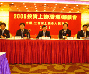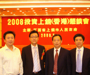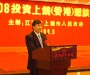 近日,由江西省上饶市政府主办的“2008投资上饶(香港)恳谈会”在香港北角新都会酒店隆重举行,上百名香港各界客商应邀出席,场面非常热闹。座谈会由上饶市副市长廖其志主持,副市长徐南凯、市长助理、外经贸主任郑卫平、市发改委主任叶礼茂及上饶经济开发区副书记谢冠森先后介绍上饶市的最新经济发展情况。香港环球商机总经理叶智辉应邀出席大会发言并参与项目签约仪式。