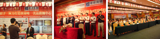 当天下午,品牌商及二百多名意向投资人齐聚一堂,共同见证知名商家签约进驻项目。作为本项目的经营管理顾问公司,叶智辉先生代表我司对项目规划、未来的经营管理理念进行了阐述,精彩的演讲获得广大投资人的一致好评。ema、PIGEDANY、蕉叶咖喱屋、一茶一坐、泉悦SPA率先登台签约进驻,现场的热烈气氛达到了高潮。 知名品牌签约进驻也标志着“时尚品牌加盟中心”的正式成立,环球商机将为加盟中心引入更多、更新颖的时尚品牌加盟权,打造淮南唯一名品旗舰中心,使本项目真正成为“时尚策源地”和“聚会首选地”。